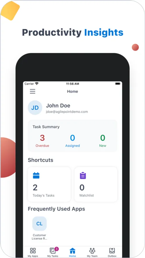 The AgilePoint NX Mobile App helps you manage your business on your mobile device and access your enterprise apps running on the AgilePoint No-Code/Low-Code Platform.