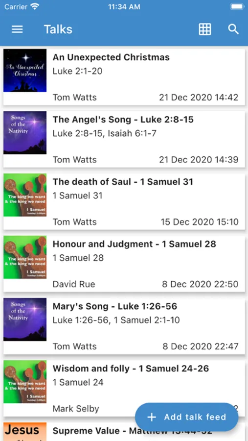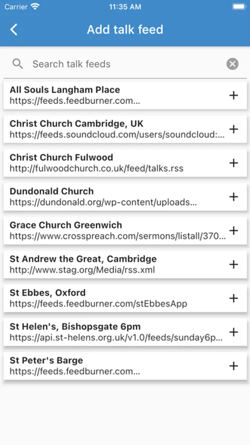 This app lets you subscribe to multiple church sermon podcast feeds so that you can stream/download talks (in video format where available).