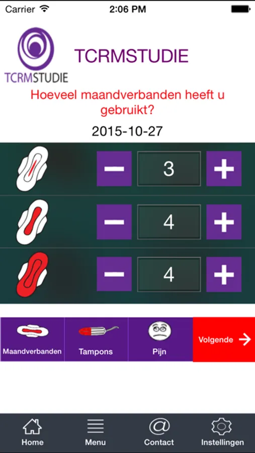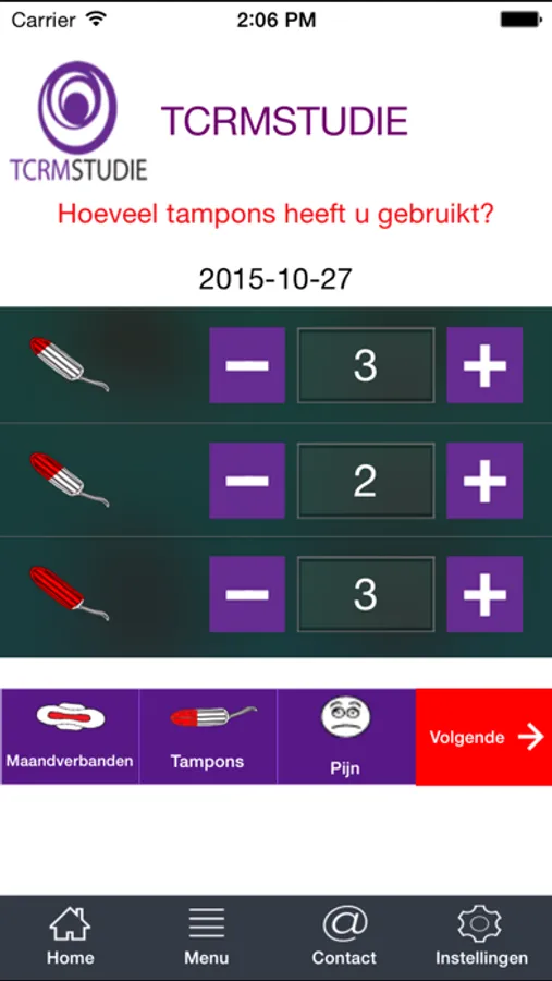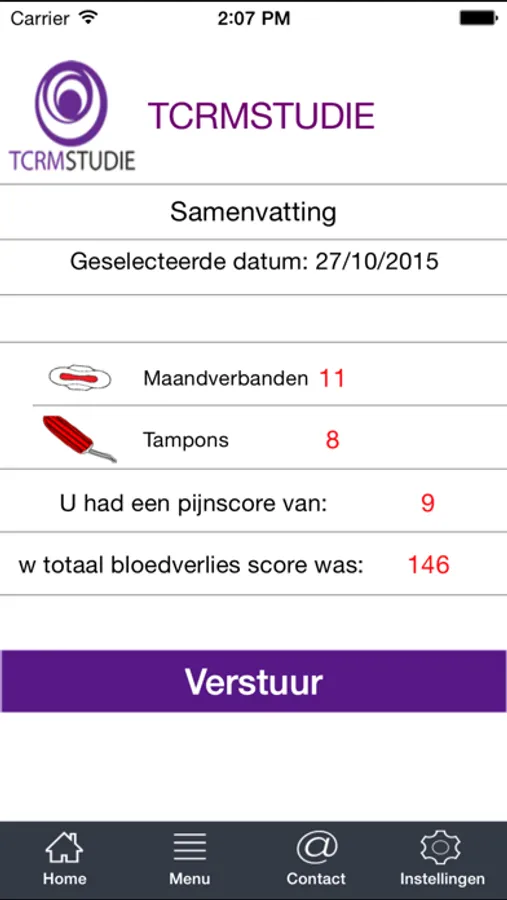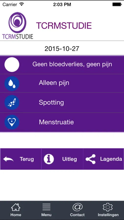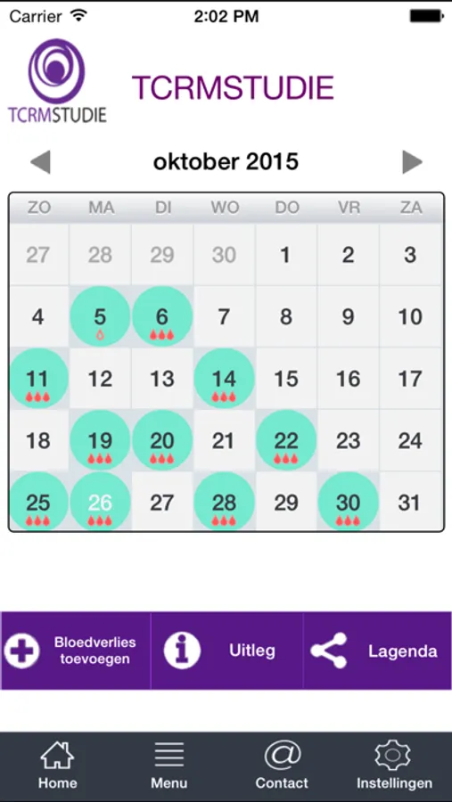 Deze applicatie is gemaakt ter ondersteuning van de TCRM studie. Als u niet mee doet aan dit onderzoek, kunt u geen gebruik maken van deze app. Het betreft een menstruatie kalender om de hoeveelheid bloedverlies voor en een operatie te evalueren.