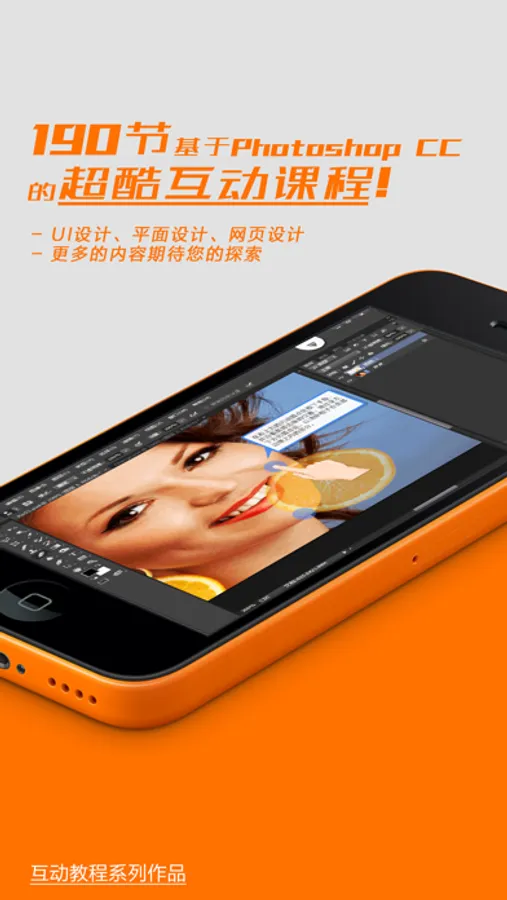Photoshop CC互动教程中的每一节课都是精挑细选的。主要包含图像处理、修图、美颜、插画、ui设计、平面设计、交互设计、网页设计和制作、矢量绘图、广告摄影、影像创意、界面设计、标志设计、名片设计、包装设计、视觉创意、图像合成等领域。