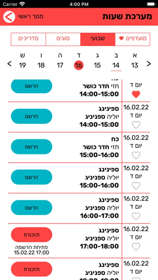 שיריון מקום בשעורים עמוסים, סימון השעורים המועדפים, הצגת השעורים של המדריך המועדף עליך.