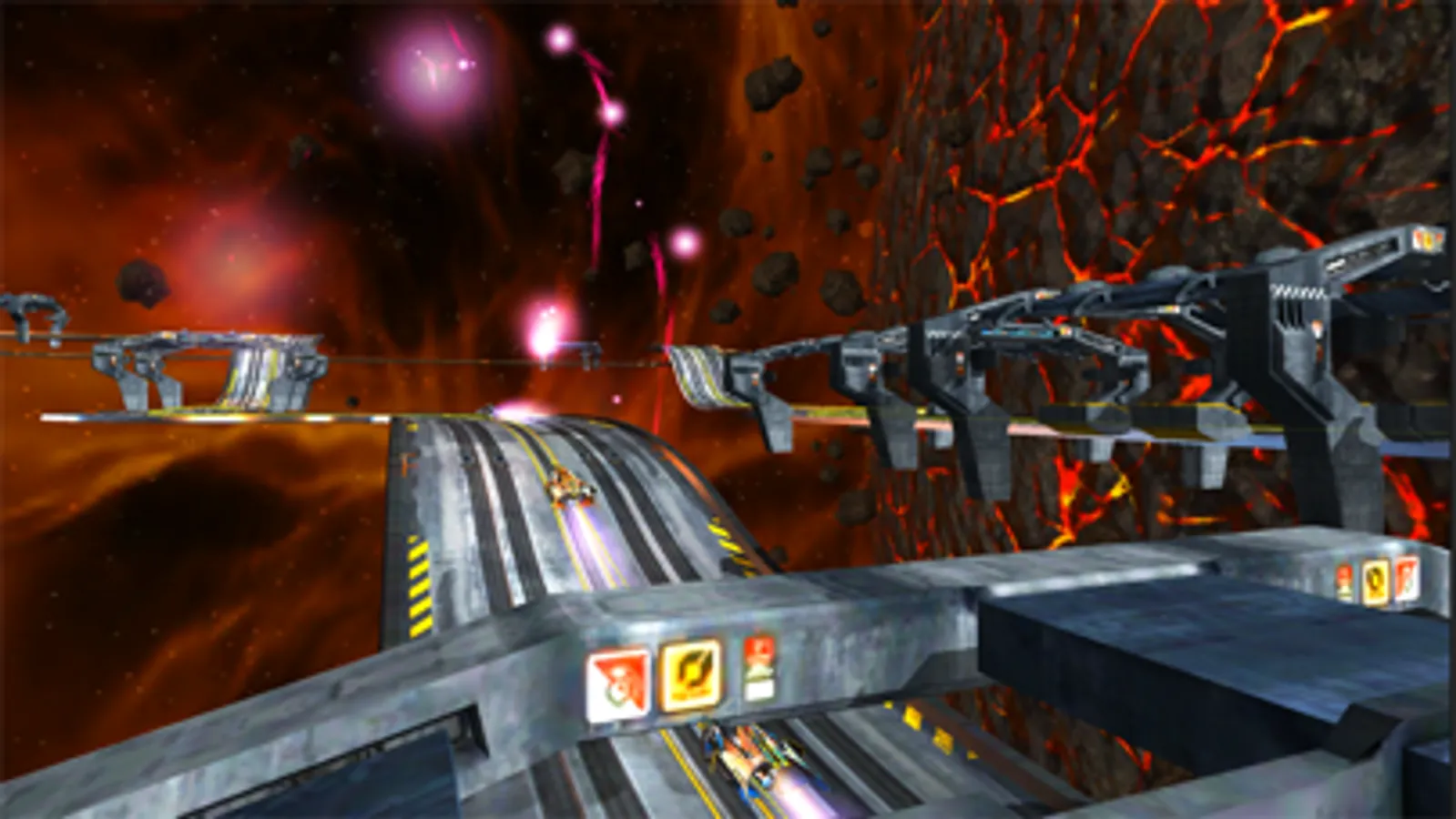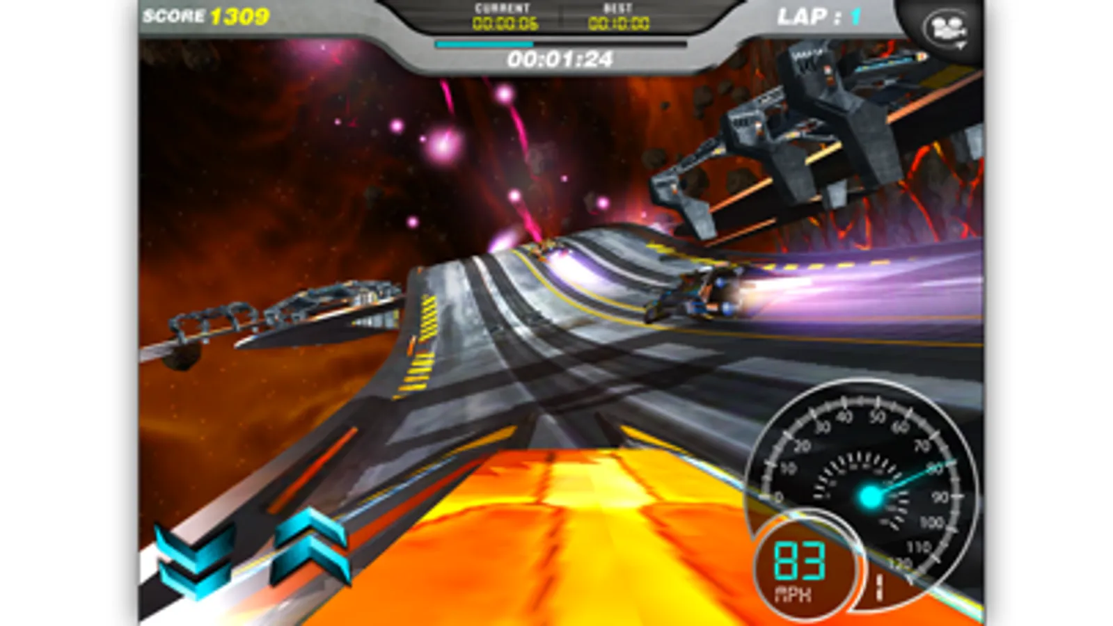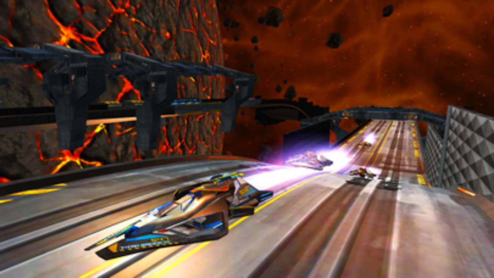 In the year 3001, the mega corporation Titian Technologies hosts a racing event for the entire galaxy to watch! Drive awesome high tech hover vehicles to their limit and blast your way down the futuristic track!