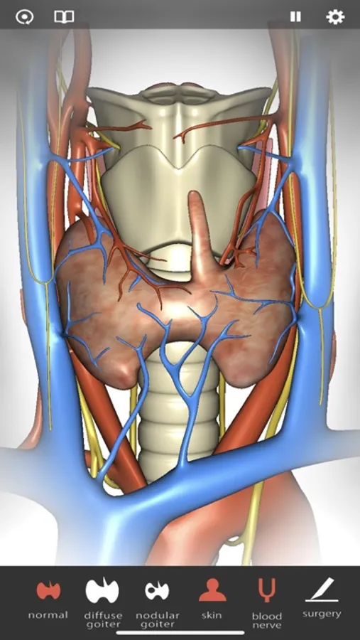 - It displays a thyroid in 3 patterns, states of the skin, vessels and nerves, only nerve.