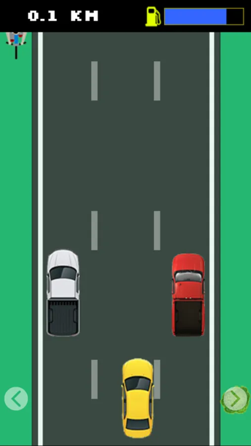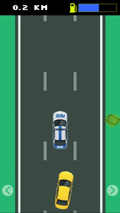 There are other vehicles such as car, bus, ambulance, truck, tanker, police vehicle. You can avoid accidents by quickly changing lanes. No need to think about accelerate or break. if you catch the 'Slow' sign on the road your speed will be reduced and if you catch the 'Fast' sign your speed will be increased. Digital odometer on the screen will show you how far you have driven. There is no speedometer because you'll know if you are fast or slow. There will be traffic jam. Take your chance to overtake vehicles by driving on the road verge. But be careful you may crash into a tree or a cyclist. Be aware of the fuel level. You may have to catch the gas pump signs on the road.