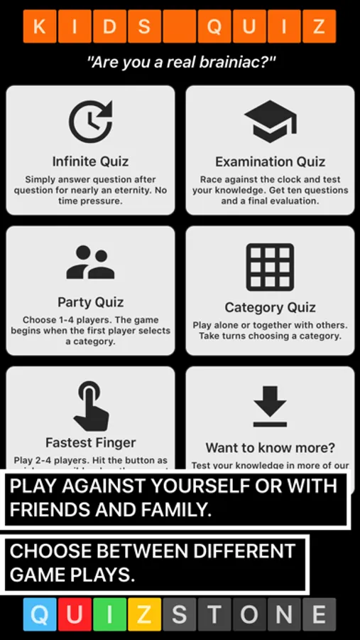 This app from QuizStone® turns your iPad, iPhone, and iPod into a social game with stimulating questions, educating explanations, entertaining knowledge and encouraging game plays.