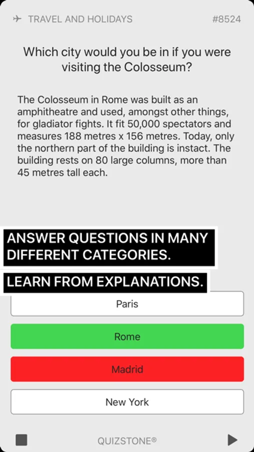 Quiz with friends and family in several fun types of games! If you don’t know the answer...you WILL learn and improve your skills!