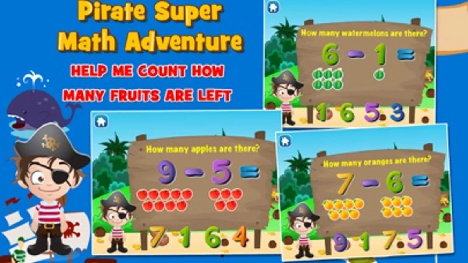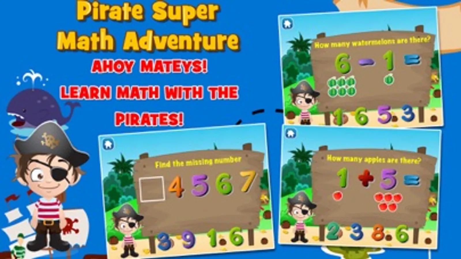 Pirate Math for Preschoolers: Super Math Adventure on Treasure Island is a game about numbers, counting, addition, subtraction, matching and number sequences that allows your little one to build important math skills while they are continually entertained. Your child can practice to count, add, subtract, and match their way through engaging, fun, and cool games with nonstop neverland adventure play.