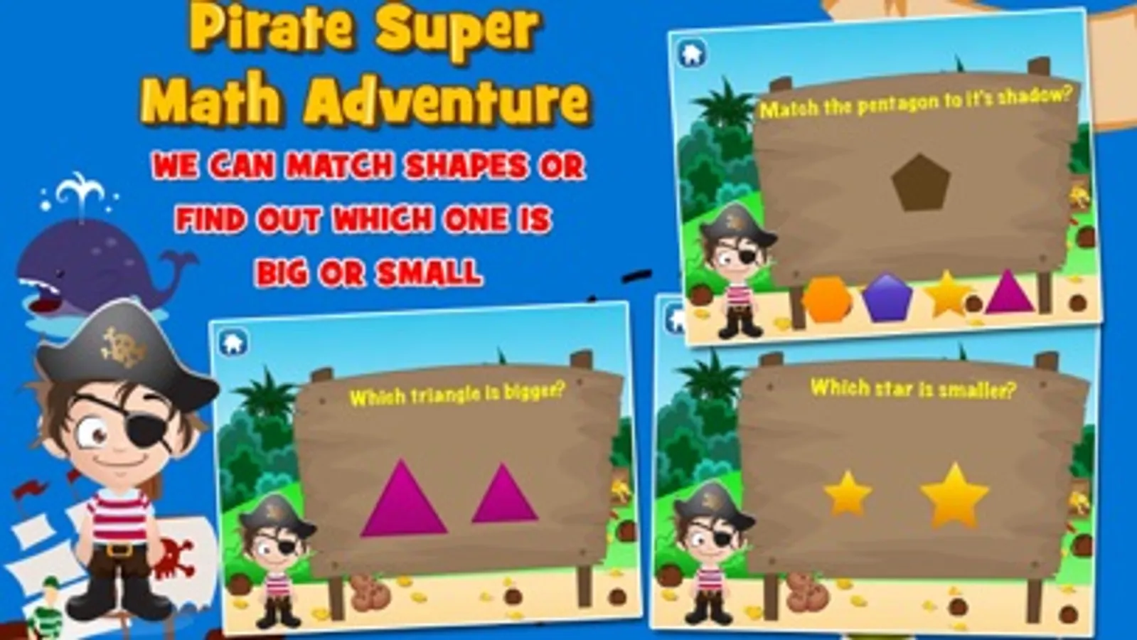 Shiver me timbers! Pirate Math for Preschoolers: Super Math Adventure on Treasure Island is a free app that features interactive, engaging, fun and cool math games that teach children about counting, matching, missing number, sizes, adding and subtracting.