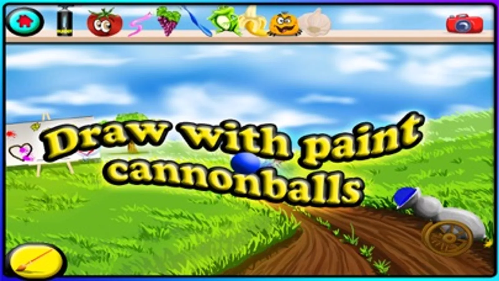 Aim & Shoot colored cannonballs to create artistic splashes on your canvas