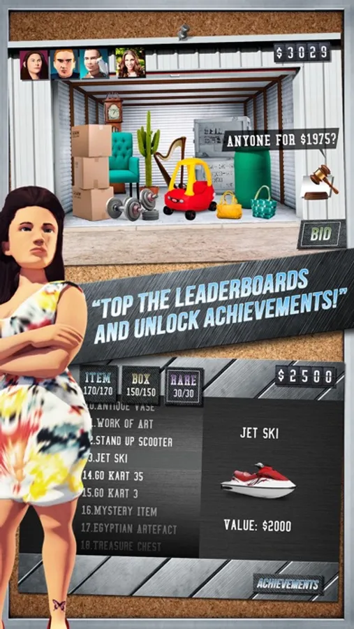 Visit the storage auctions and battle against other buyers, make the right call and walk away rich! Can you find hidden treasure and beat your friend's score on the leaderboard?