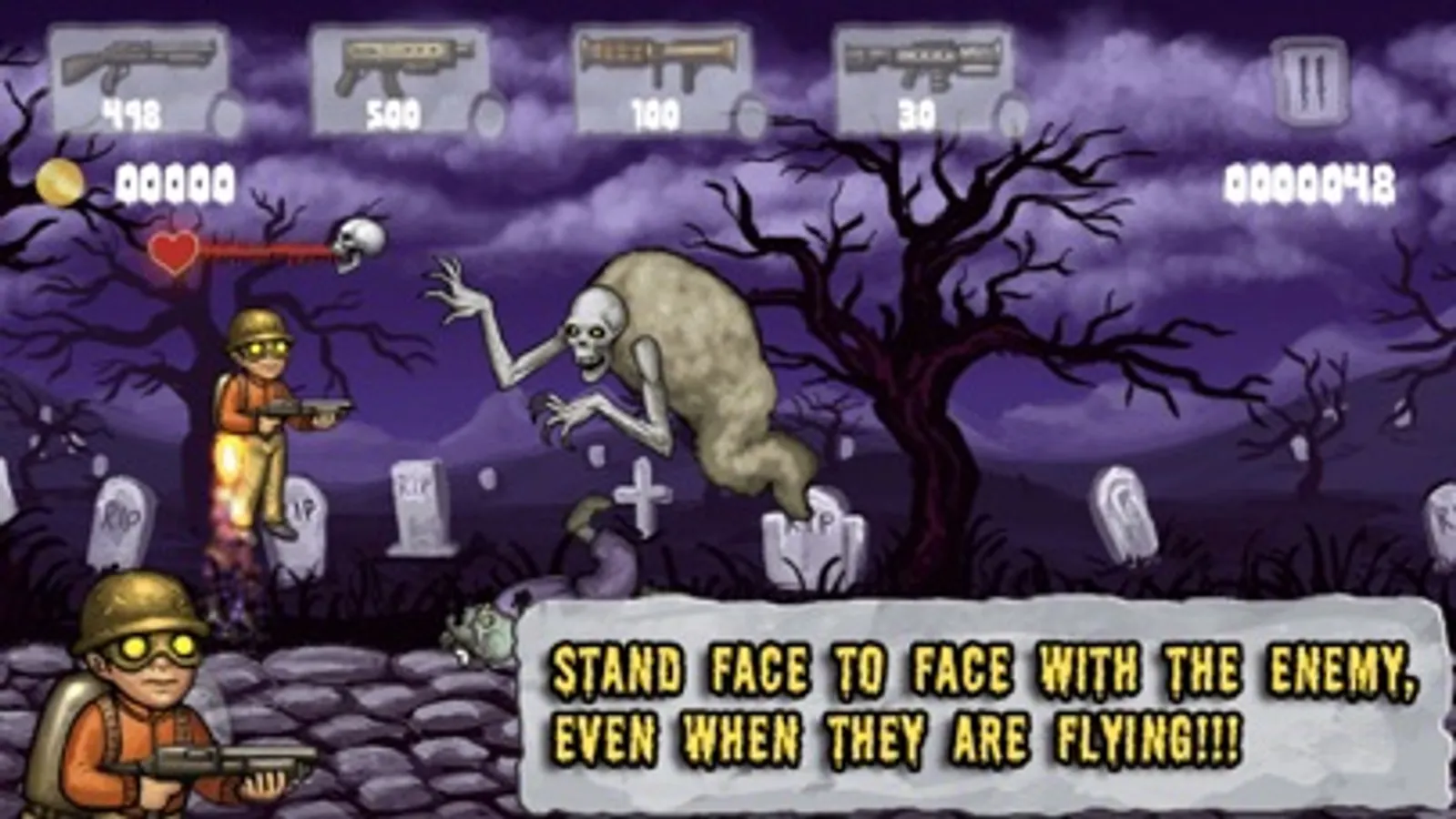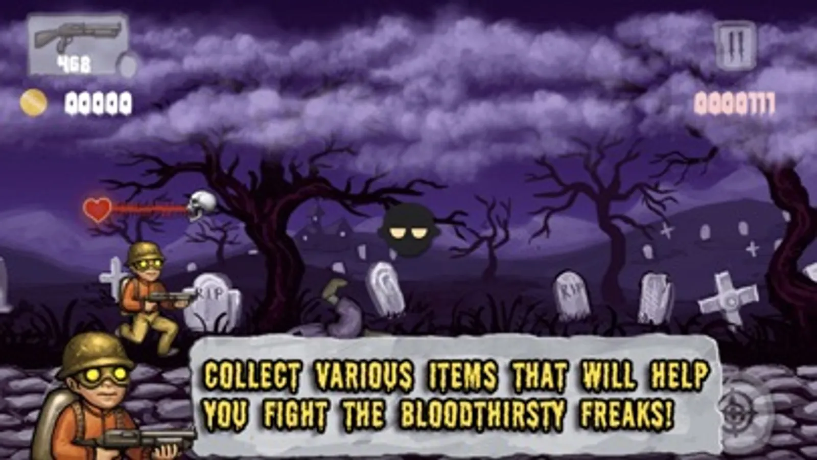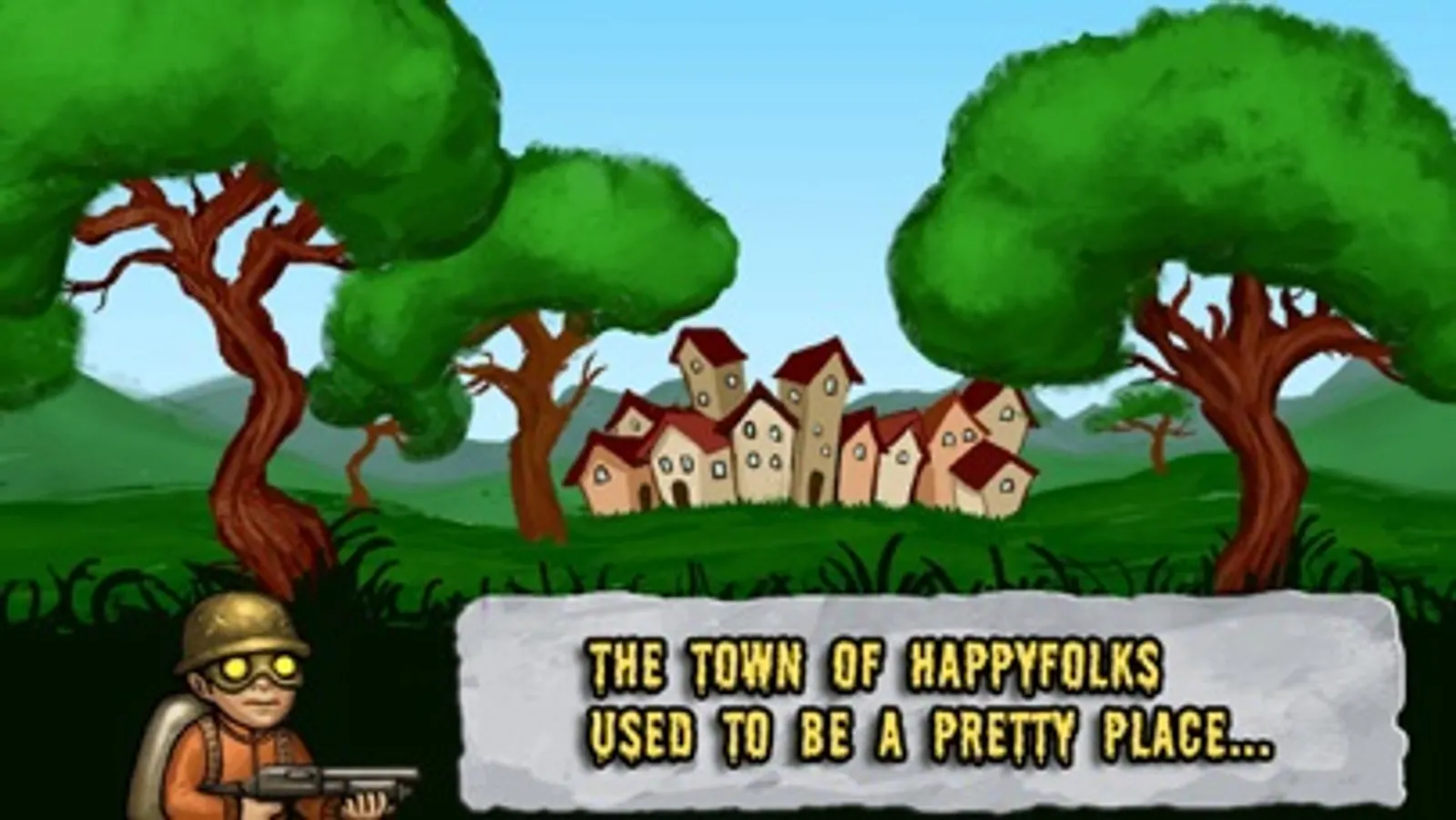 The town of Happyfolks has seen better days. The dark shadow has fallen on the peaceful town and now it is up to you, the hero with a jetpack to defend it from the angry horde of ghouls, ghosts and zombies. Fight the undead with a variety of weapons, including not one but two different types of bomb launchers. Fight either on the ground or in the air using your jetpack and send the zombies to their graves, but beware as the Grim Reaper looms at every corner, silently waiting.