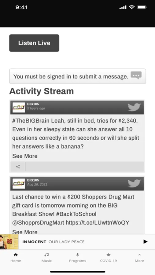 Download and join the conversation! Chat in-app with DJs and other listeners. Facebook, Twitter, text and message all inside the app!