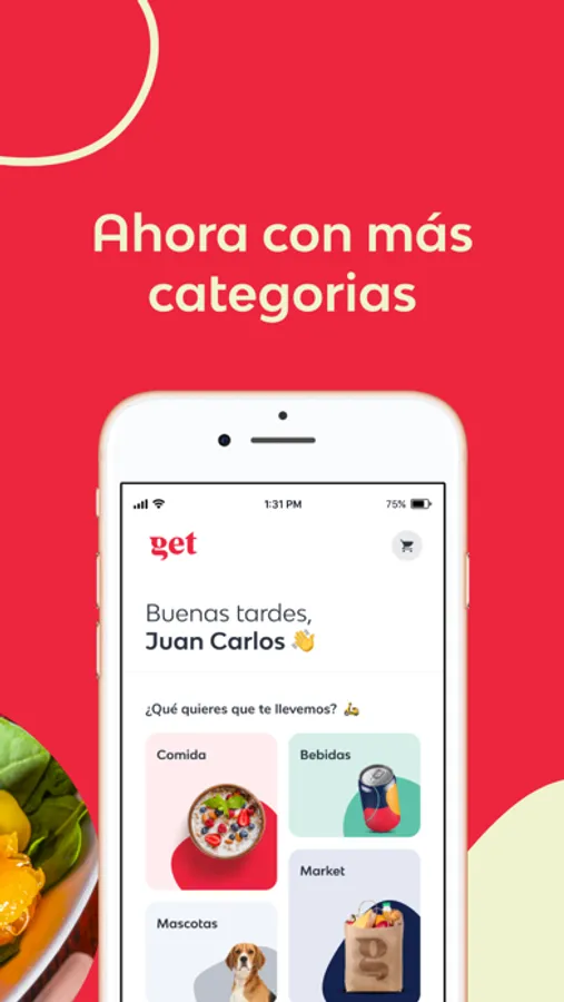 GetMyFood ahora es, simplemente, Get. Ordená de tus comercios favoritos y recibe tu pedido hasta la puerta en tan solo minutos.