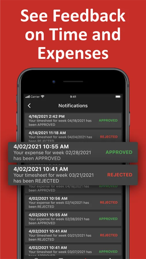 -Push notifications alert you the moment when a timesheet/expense gets approved or rejected
