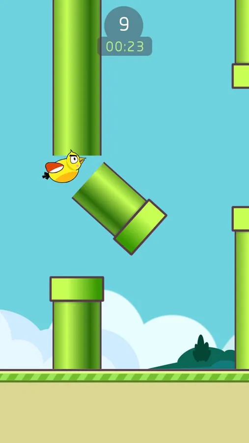 Although this little yellow bird is silly and clumsy, any obstacle which block his way will pay for its disdain.
