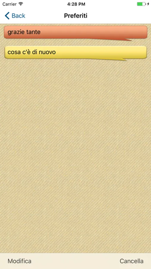 - Elenco preferiti utenti per salvare le frasi più utilizzate