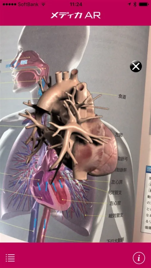 ◎臓器が画面上で回転し、指でストップや逆回転ができる!