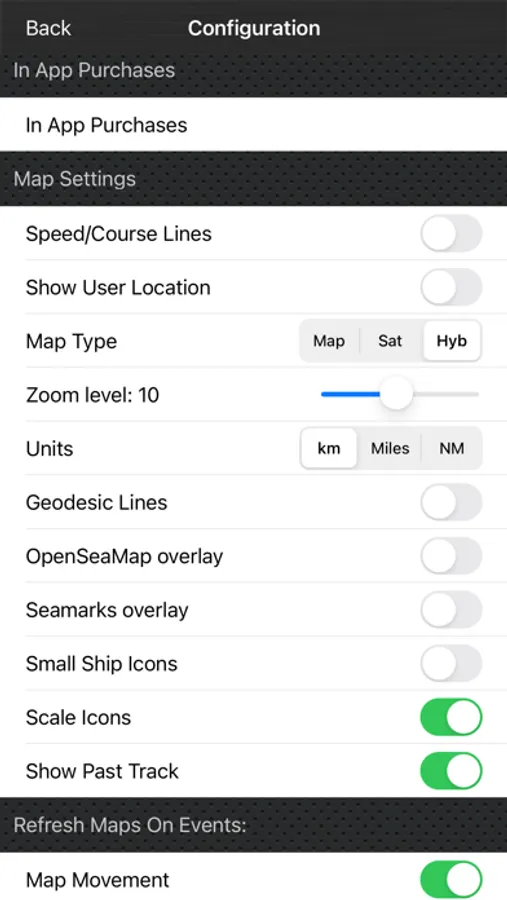 OpenSeaMap data is now accessible from within the app giving the possibility of showing the map data delivered by OpenSeaMap which includes seamarks, navigational rules and buoys in many areas of the world.