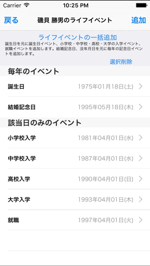 自動登録せずにイベントを追加したり、「家購入日」や「創業日」など独自のイベントを登録することも出来ます。