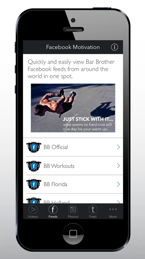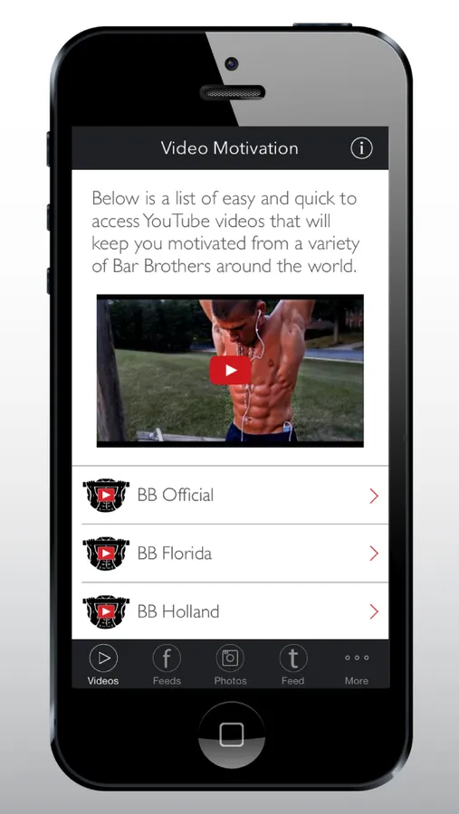Get your daily MOTIVATION on the run with the Bar Motivation App for iPhone. This app brings together all bar brothers, street workout and calisthenic training YouTube videos, Facebook and Instagram feeds from around the world all in one spot. No more searching for motivation videos and pictures because it is all here in this free app.