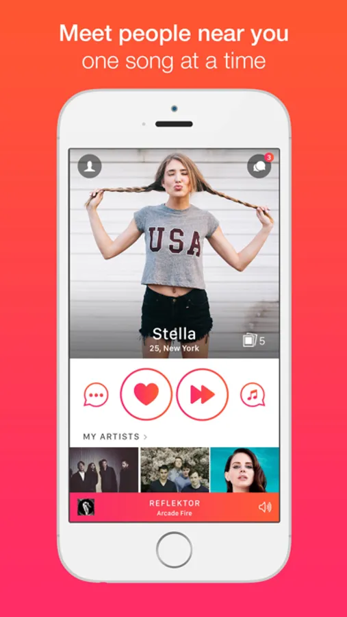 Scan your iPhone music library or add your favourite bands to see people nearby who have the most in common with you.