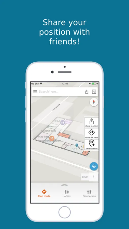 - Routing: Calculates routes from any location at the venue to any destination and visualizes the routes on the map, including route options (e.g. avoid stairs).