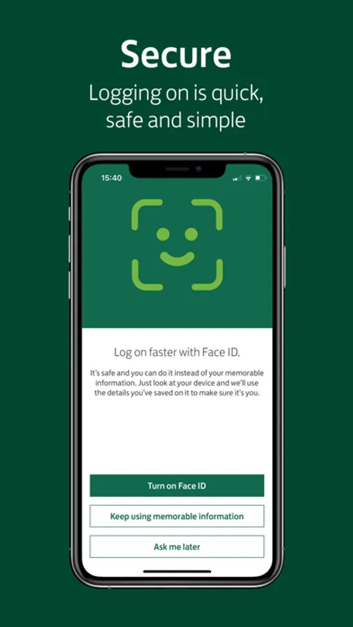 • Log on quickly and securely with fingerprints, Face ID or your memorable information