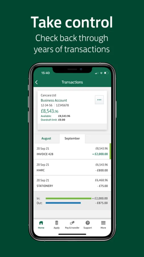 Stay in control of your business accounts on the move. Our app is fast, convenient and safe – keeping your bank details secure at all times.