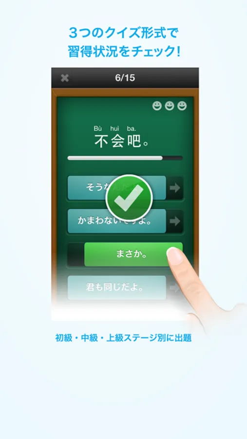 ◇ 3種類のリスニングクイズと発音練習による修得度チェック