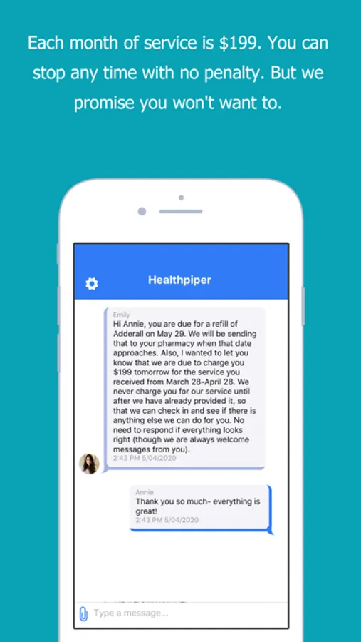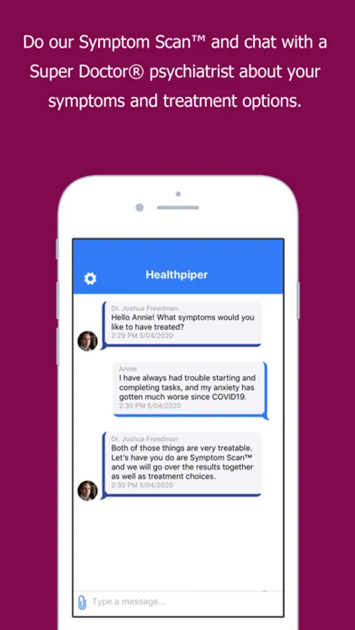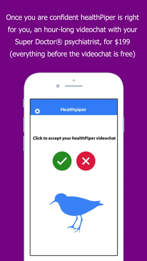 Once you are confident healthPiper is terrific, you have an hour-long videochat with your Super Doctor® psychiatrist, for $199.