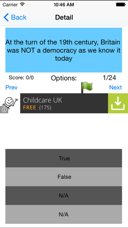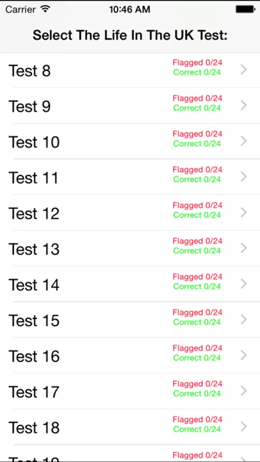 The App helps you get 47 tests - each of 24 questions. You can flag questions! It also shows how many questions you have answered correctly in each test.