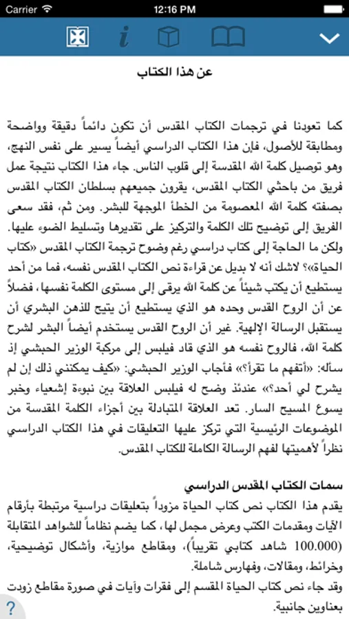في هذه الطبعة العربية أستخدم النص الكتابي لترجمة كتاب الحياة، وهي ترجمة للكتاب المقدس بلغة عربية معاصرة.