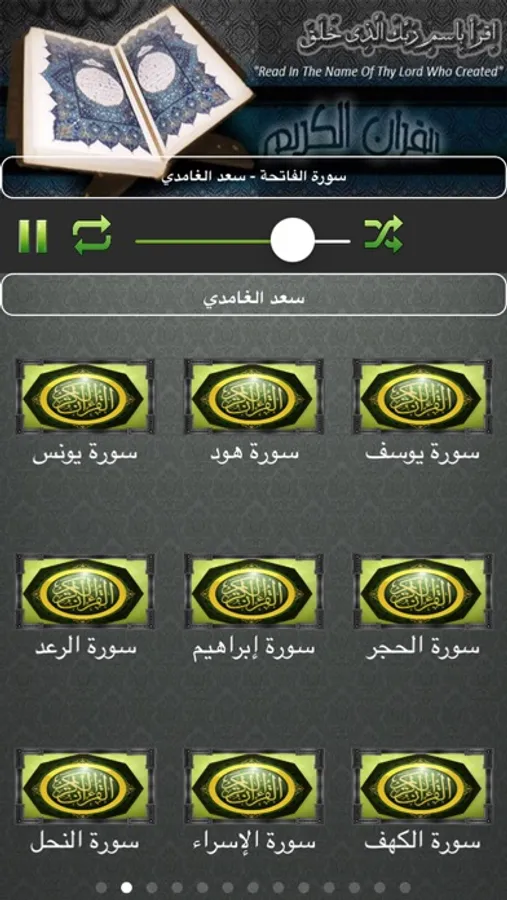 يدعم خاصية تكرار السورة والانتقال التلقائي للسورة التالية