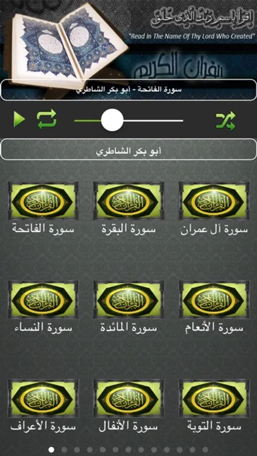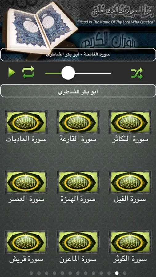 يدعم خاصية تكرار السورة والانتقال التلقائي للسورة التالية