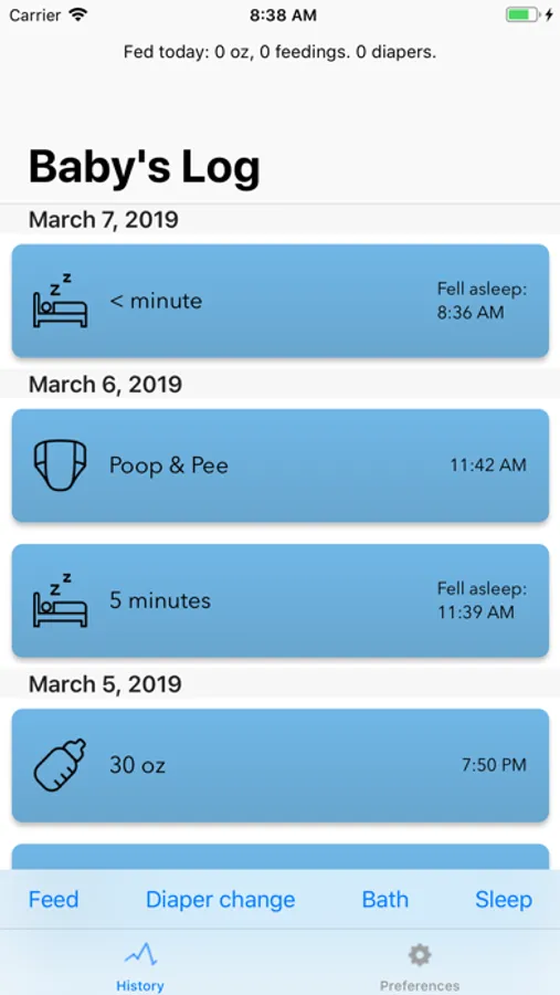 Newborn Logbook is an application created by a father of Mary Eve, who wanted to keep track of all the feeding times, diaper changes, sleep times and baths over the time.