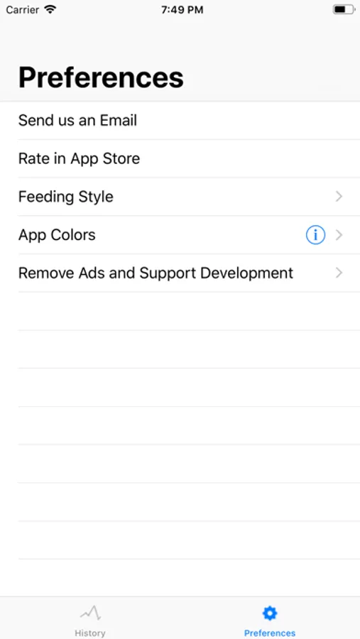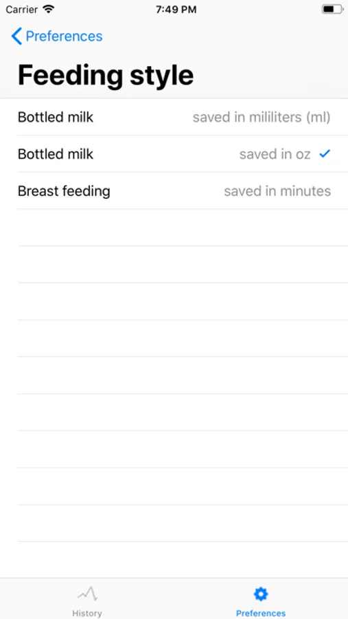 * diaper changes (and you can select what kind of 'contamination' was in the diaper)