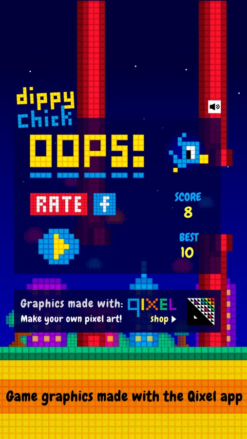 Watch out for more pixel games from us, made with lush Qixel graphics. Qixel is a super-stylish pixel art app that allows you to create your own game graphics with ease!