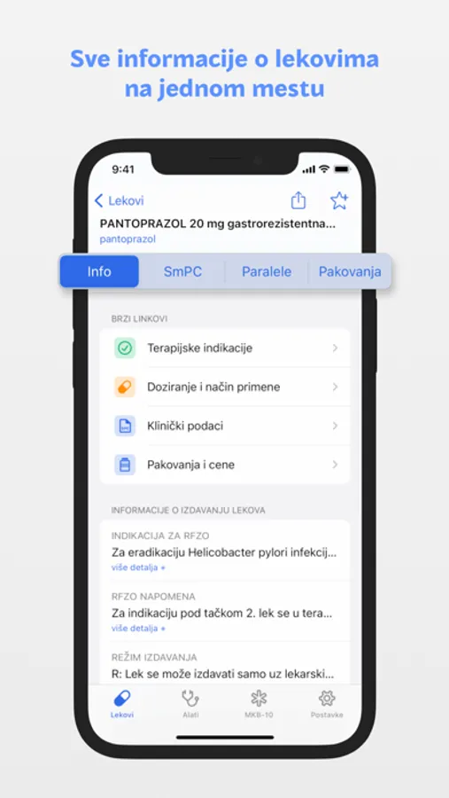 Pomoću aplikacije možete lako da pretražujete u registru lekova sa više od 3.700 lekova i dobijete trenutni pristup interaktivnim kliničkim alatima i kalkulatorima doziranja.