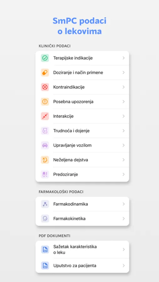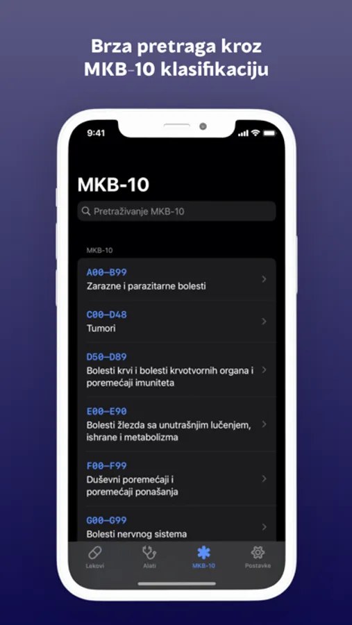 Aplikacija takođe uključuje klasifikaciju bolesti ICD-10 i ATC sistem klasifikacije. Redovno ih ažuriramo, tako da uvek imate najnovije informacije.