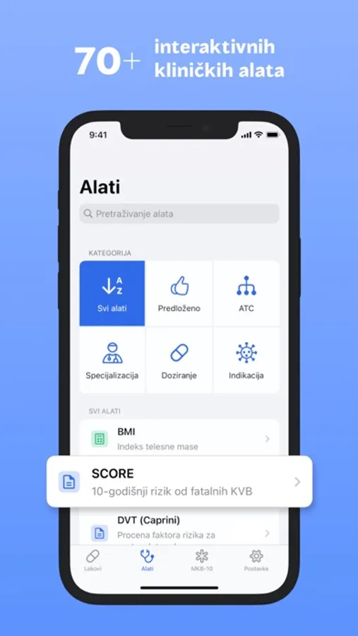 Zajedno sa kompletnom bazom podataka o lekovima, aplikacija uključuje niz interaktivnih kliničkih alata i korisnih kalkulatora doziranja u vašoj svakodnevnoj praksi: