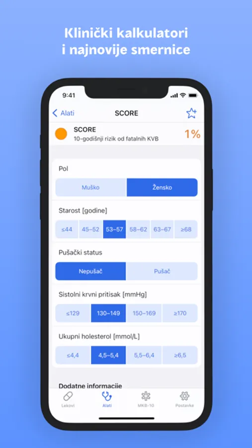 Imajte na umu: Delovi ove aplikacije su namenjeni za upotrebu zdravstvenih radnika kao alat za podršku pri odlučivanju. Ne treba da ih koriste pacijenti i ne zamenjuju savet lekara.