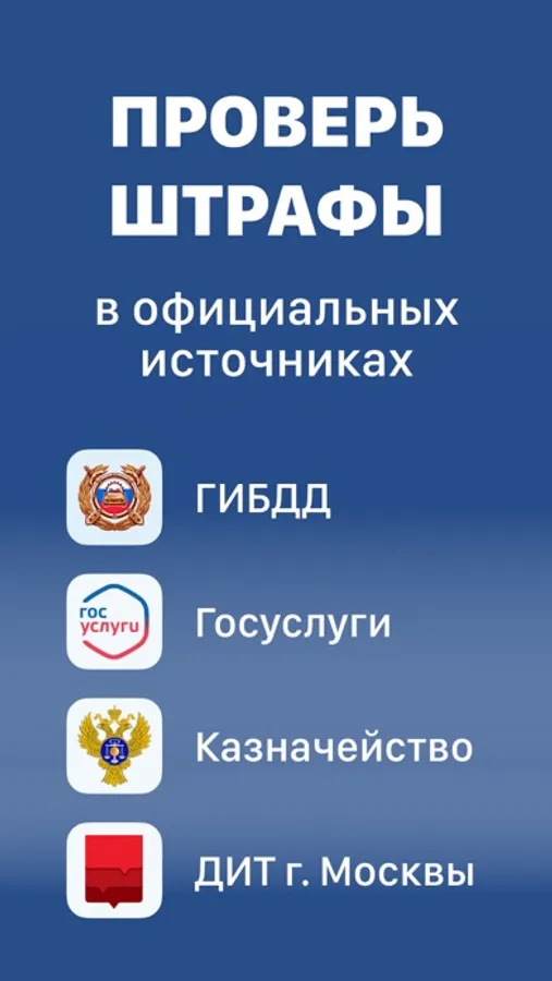 "Штрафы ГИБДД официальные" - надежное приложение для проверки и оплаты штрафов ГИБДД онлайн. Каждый день проверяется более 500 тысяч штрафов ГИБДД и ПДД. Приложение поможет вам освободиться от бумажных квитанций и походов в банк или Госуслуги для оплаты штрафов.