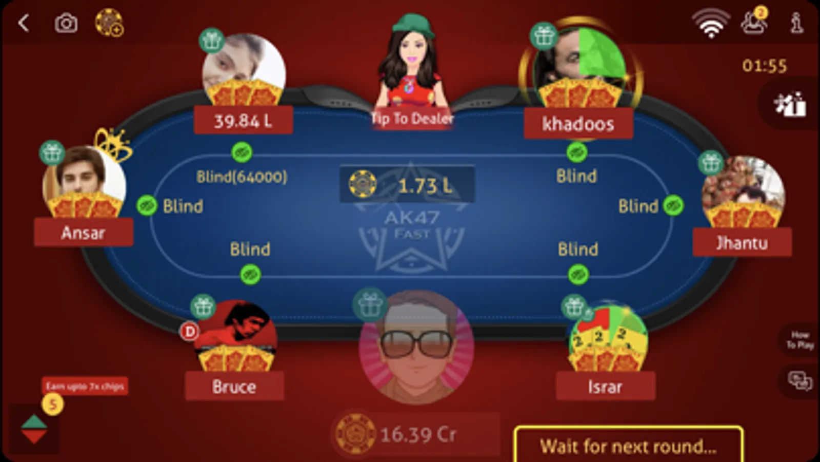 Teen Patti now also comes with a “Dealer Mode”, where you get to be the dealer and select the mode of the game. If you select variation of the week, winner gets twice the pot.