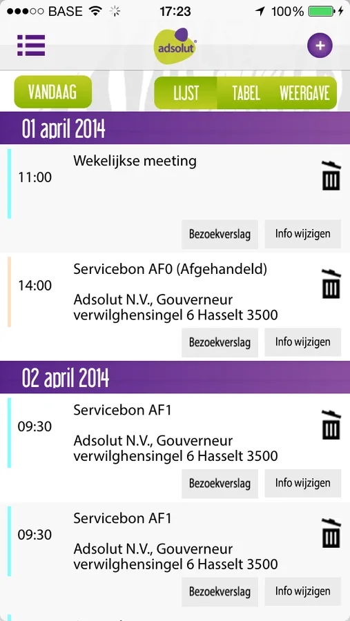 Als je adsolut CRM/ERP platform gebruikt kan je deze APP gebruiken om: