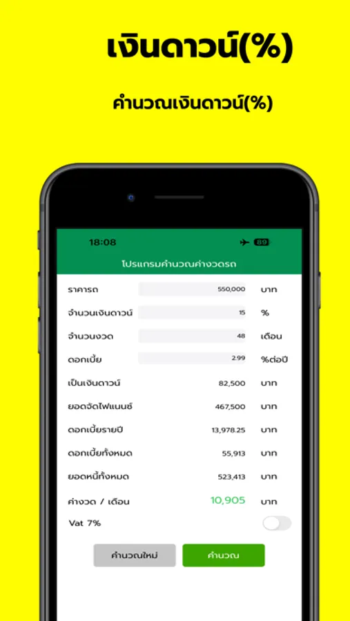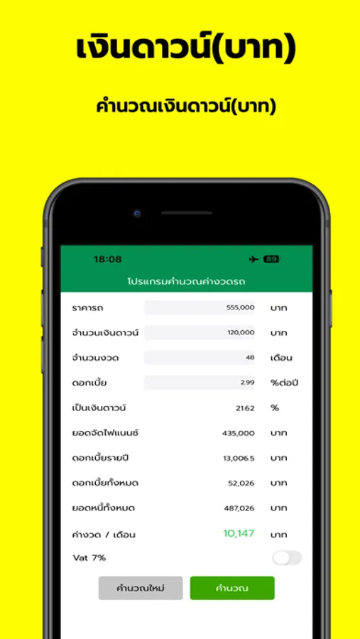 แอปพลิเคชันคำนวณอัตราการผ่อนค่างวดรถ
