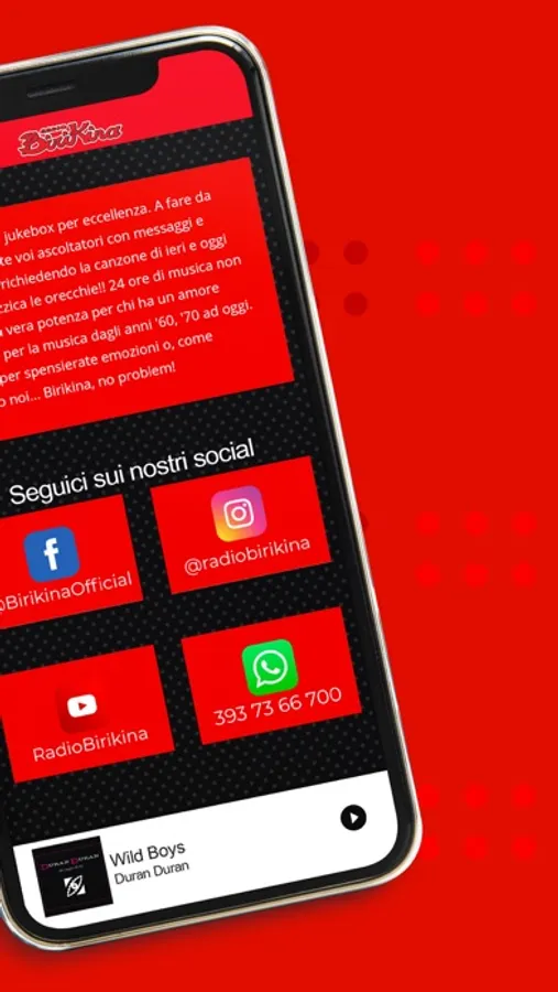 Radio Birikina il juke box anni 60 dove la monetina è stata sostituita da una telefonata, dove ognuno può ascoltare e presentare la sua canzone del cuore con il servizio di segreteria telefonica ora sempre con te!!!