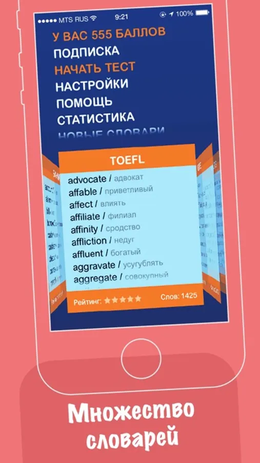 Проходи тесты, скачивай новые словари, набирай баллы!