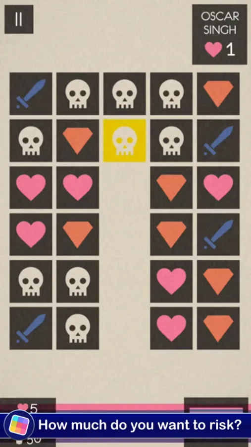 After choosing 5 adjacent tiles you only get one! Play wisely with the odds and defeat your enemies before they defeat you.