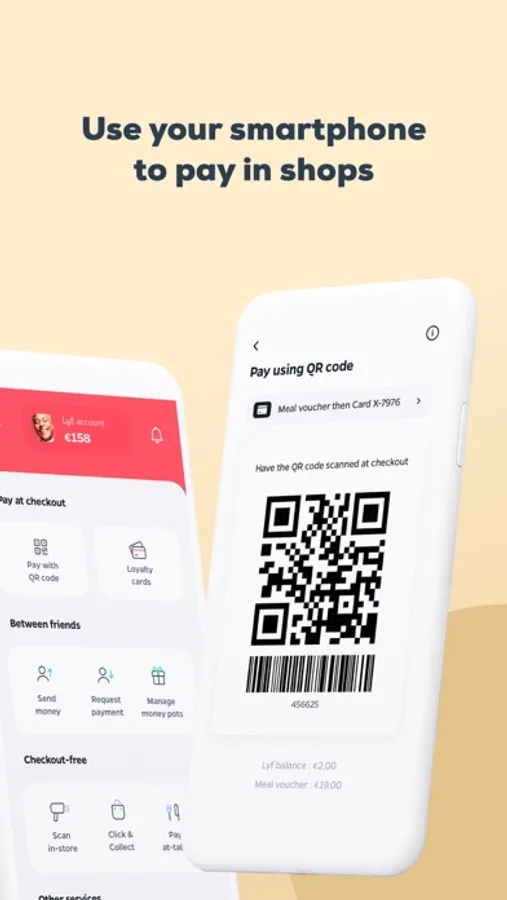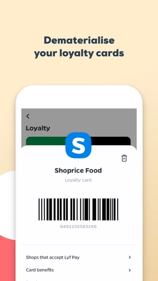 You can stock the loyalty cards of your favourite shops in your smartphone and present them at checkout via the app. Cinema card, membership card, library card..? That works too ! Stock any card that has a barcode or QR code in Lyf Pay.