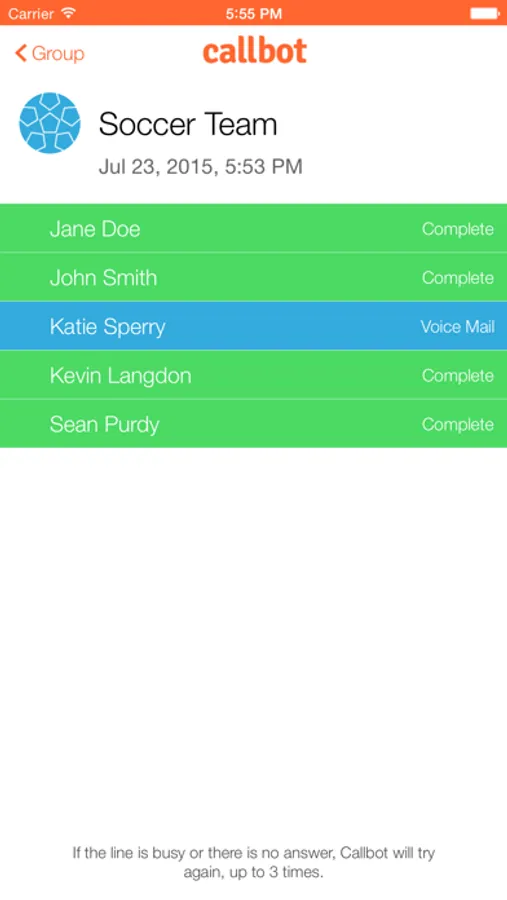 Callbot will call a group of contacts for you in minutes to deliver a personally recorded voice message right from your iPhone. Simply make a group from your contacts, and then record your own voice message, then let Callbot make all the calls for you.